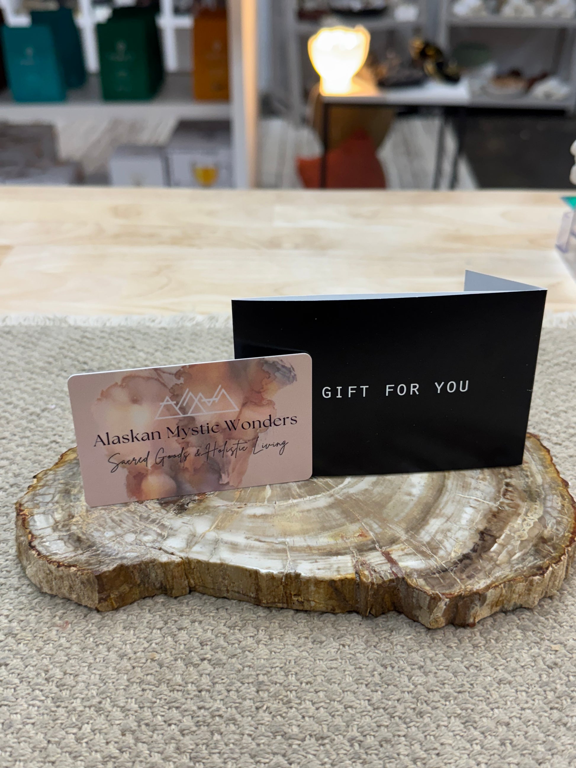 Share the magic of choice with an Alaskan Mystic Wonders Gift Card. Available as both a physical card and a digital card, it’s the perfect way to give something meaningful while letting your loved ones pick what truly speaks to them. Whether they’re drawn to crystals, jewelry, home décor, or spiritual wellness items, this gift card makes it easy to share positive energy and intention for any occasion.