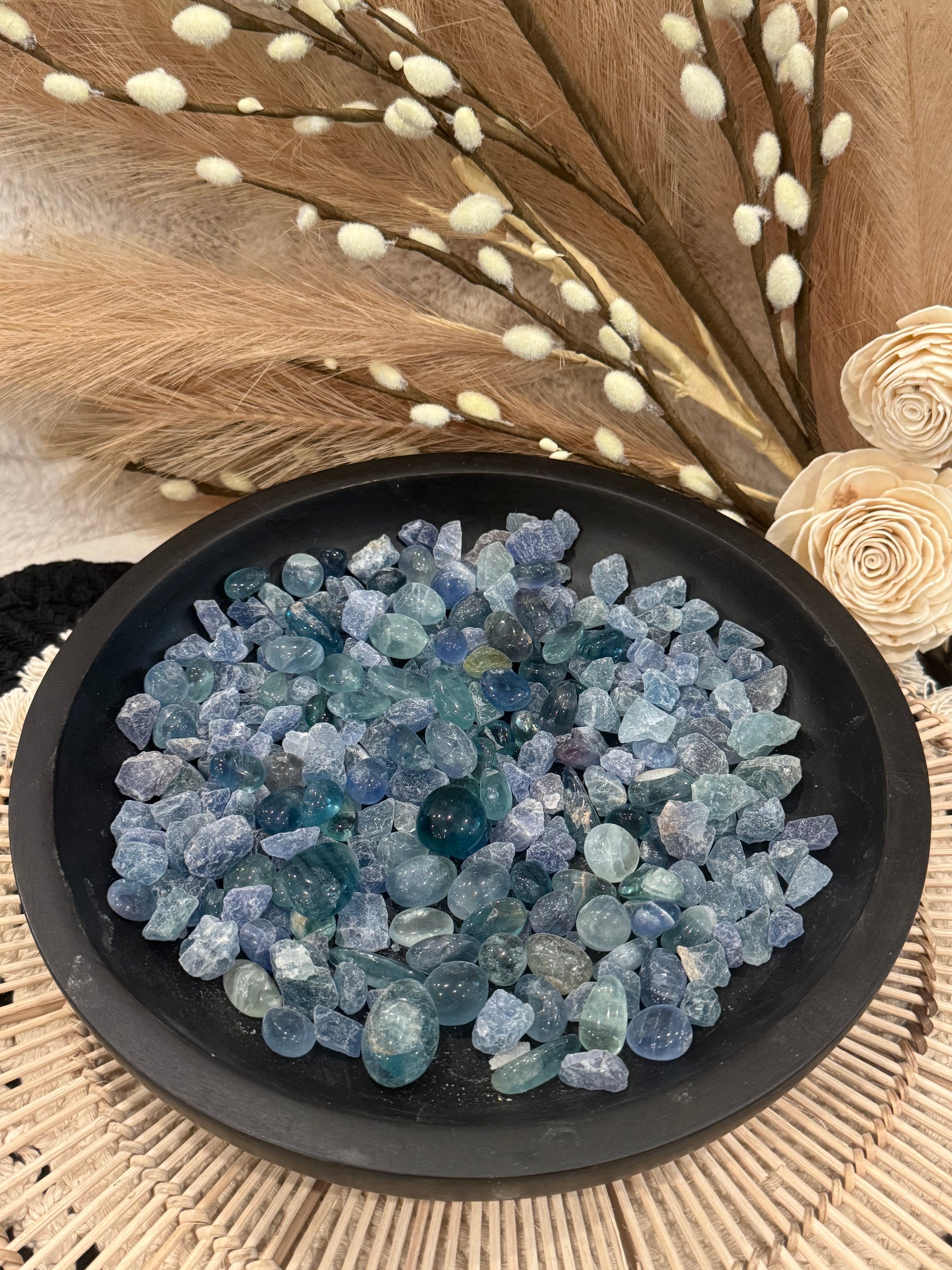 Step into serenity with the soothing energy of Blue Fluorite. These tumbled stones are perfect for enhancing mental clarity, easing anxiety, and encouraging truthful communication. With its icy blue tones and calming presence,