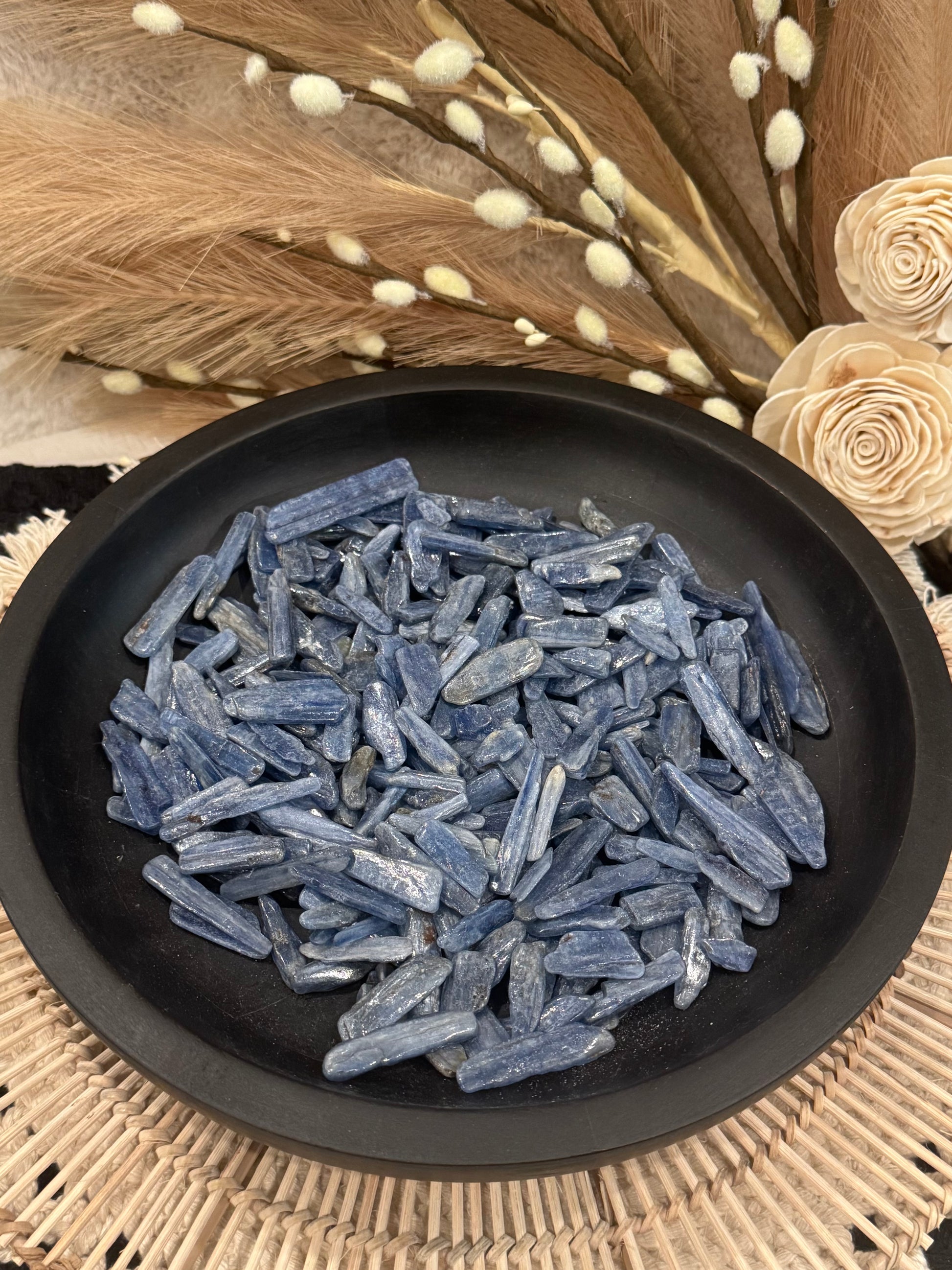 Blue Kyanite is a high-vibrational aluminum silicate crystal that forms in shimmering blades or fans. It's known for enhancing clarity, calm communication, and spiritual awareness. Unlike many stones, Blue Kyanite does not absorb negative energy, making it self-cleansing and always ready to work.