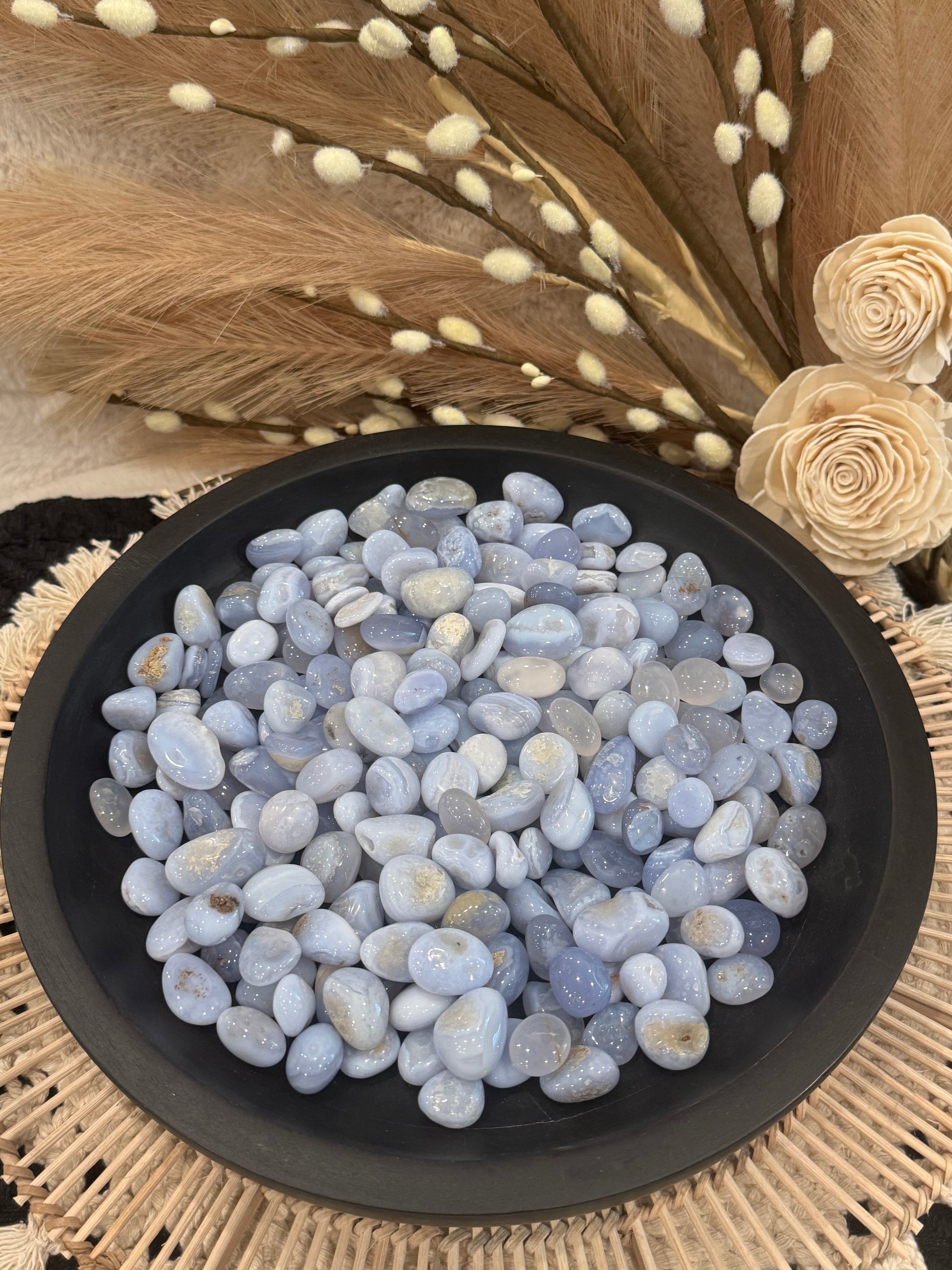 Tumbled Blue Lace Agate is smooth, gentle, and ideal for everyday use. Its polished form makes it perfect for carrying, meditating with, or placing on the throat during energy work. Tumbled stones offer accessible, balanced energy while still holding the crystal’s natural vibration.