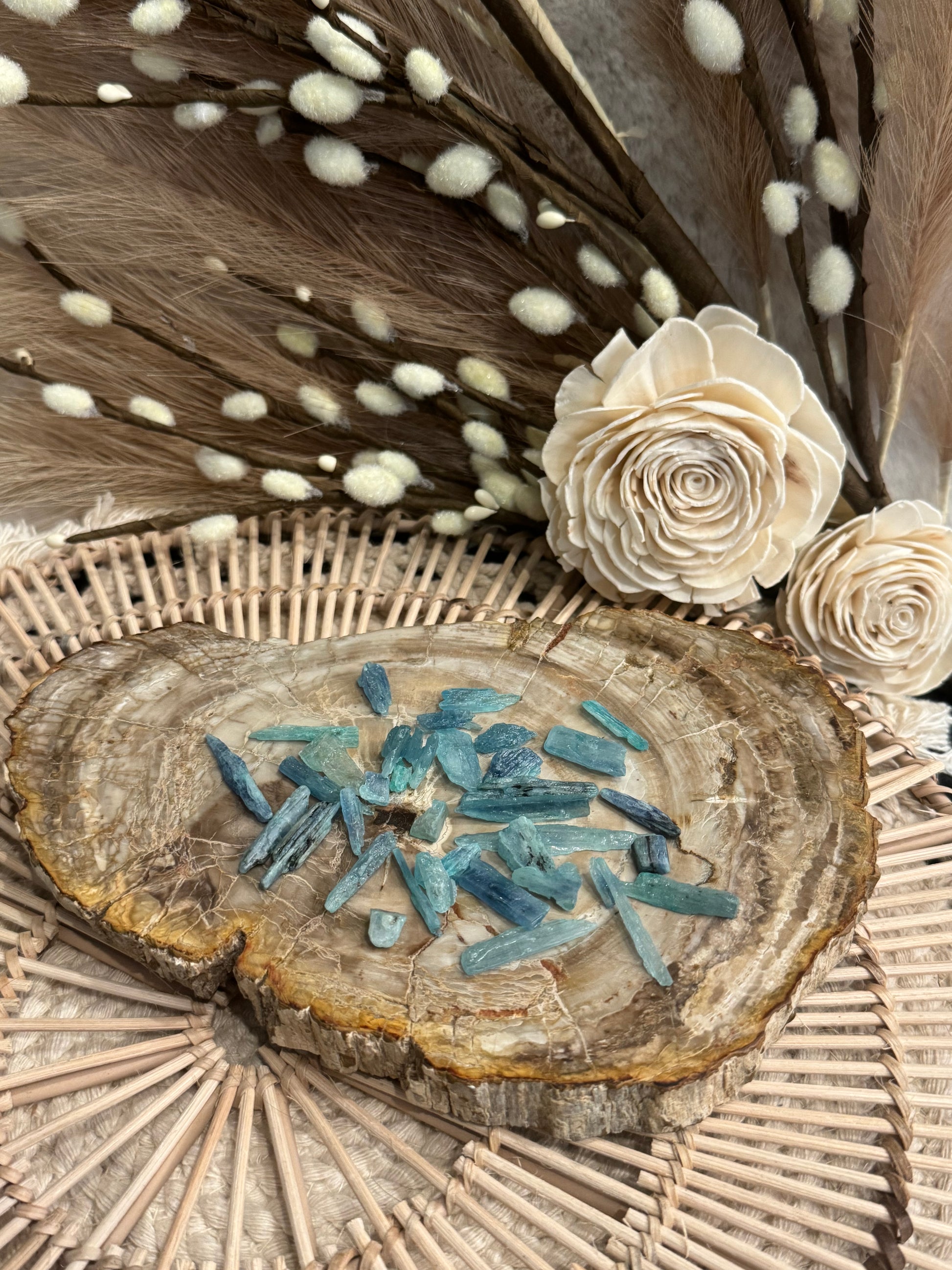 Known for its calming and stabilizing energy, Blue Tourmaline supports those going through emotional overwhelm, anxiety, or mental clutter. It helps release suppressed feelings and encourages honest self-expression, making it a powerful ally for journaling, therapy, or spiritual reflection. The raw form offers a more intense, grounded energy—perfect for connecting to your inner truth without filters.