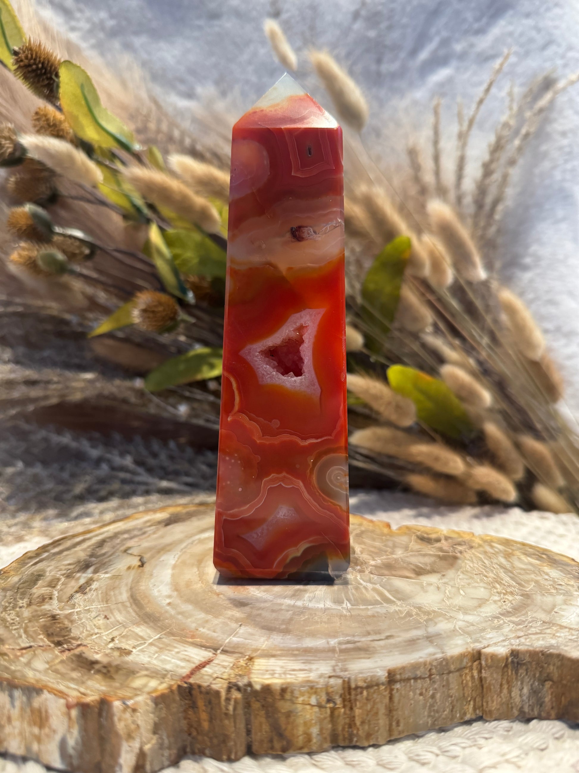 A Carnelian Druzy Tower is the perfect crystal for those looking to awaken their passion, amplify their energy, and step into their personal power!