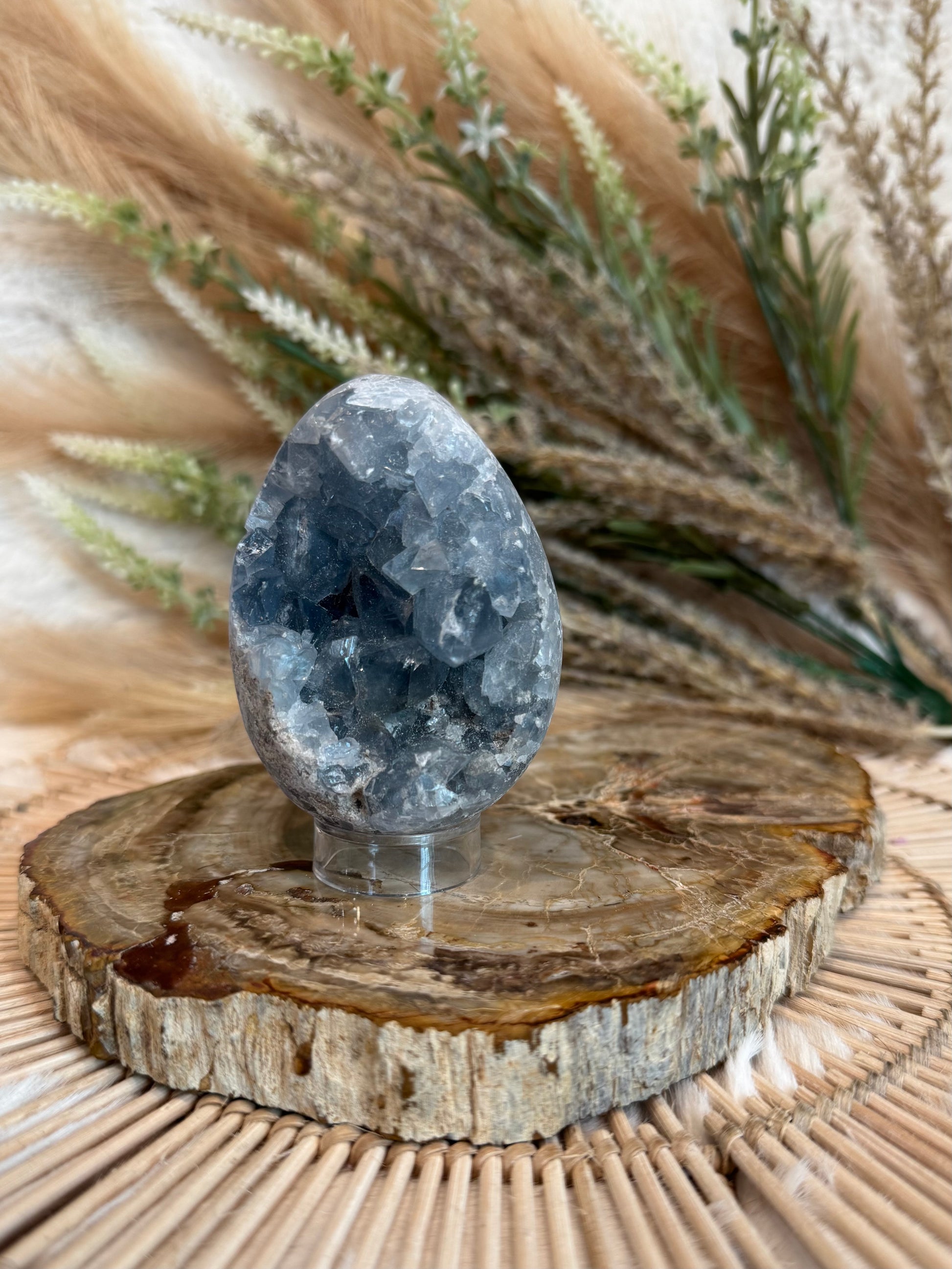 - The egg symbolizes new beginnings, transformation, and nurturing energy. Its shape amplifies Celestite’s ability to: