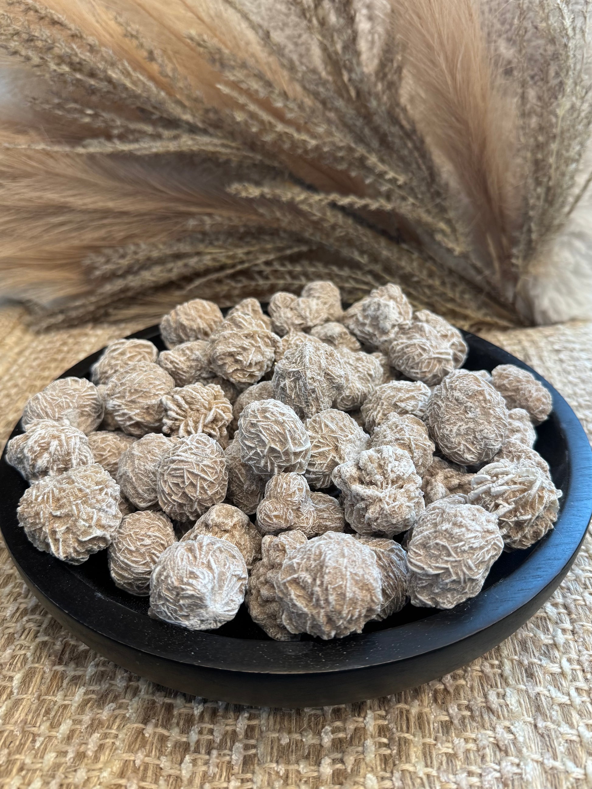 Meet Desert Rose, a mesmerizing crystal formed over time in arid landscapes. This unique gypsum formation resembles a blooming rose, carrying gentle yet powerful energy for intuition, clarity, and grounding.