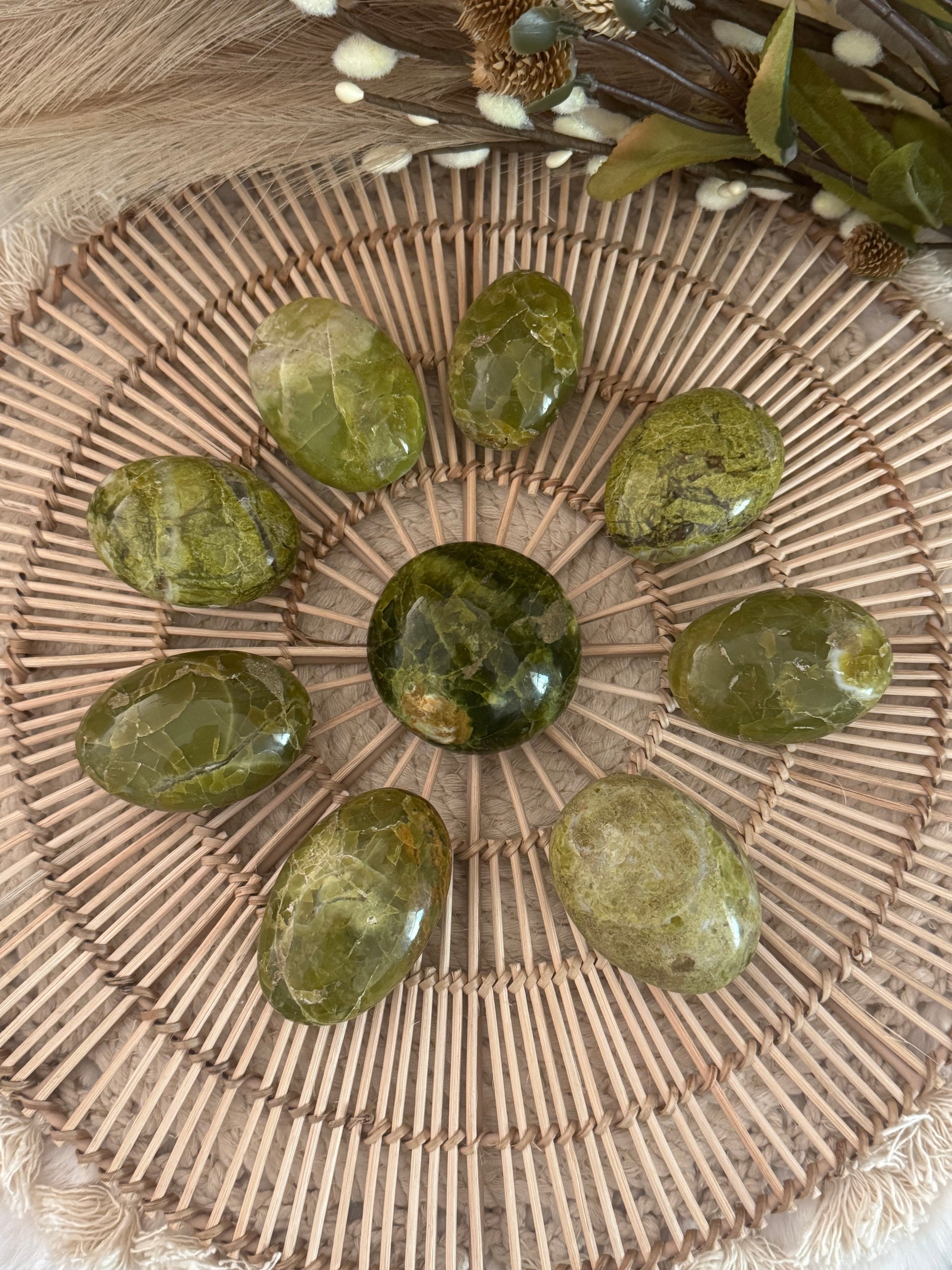 Bring the soft strength of Green Opal into your space or daily self-care practice with these thoughtfully selected palmstones.