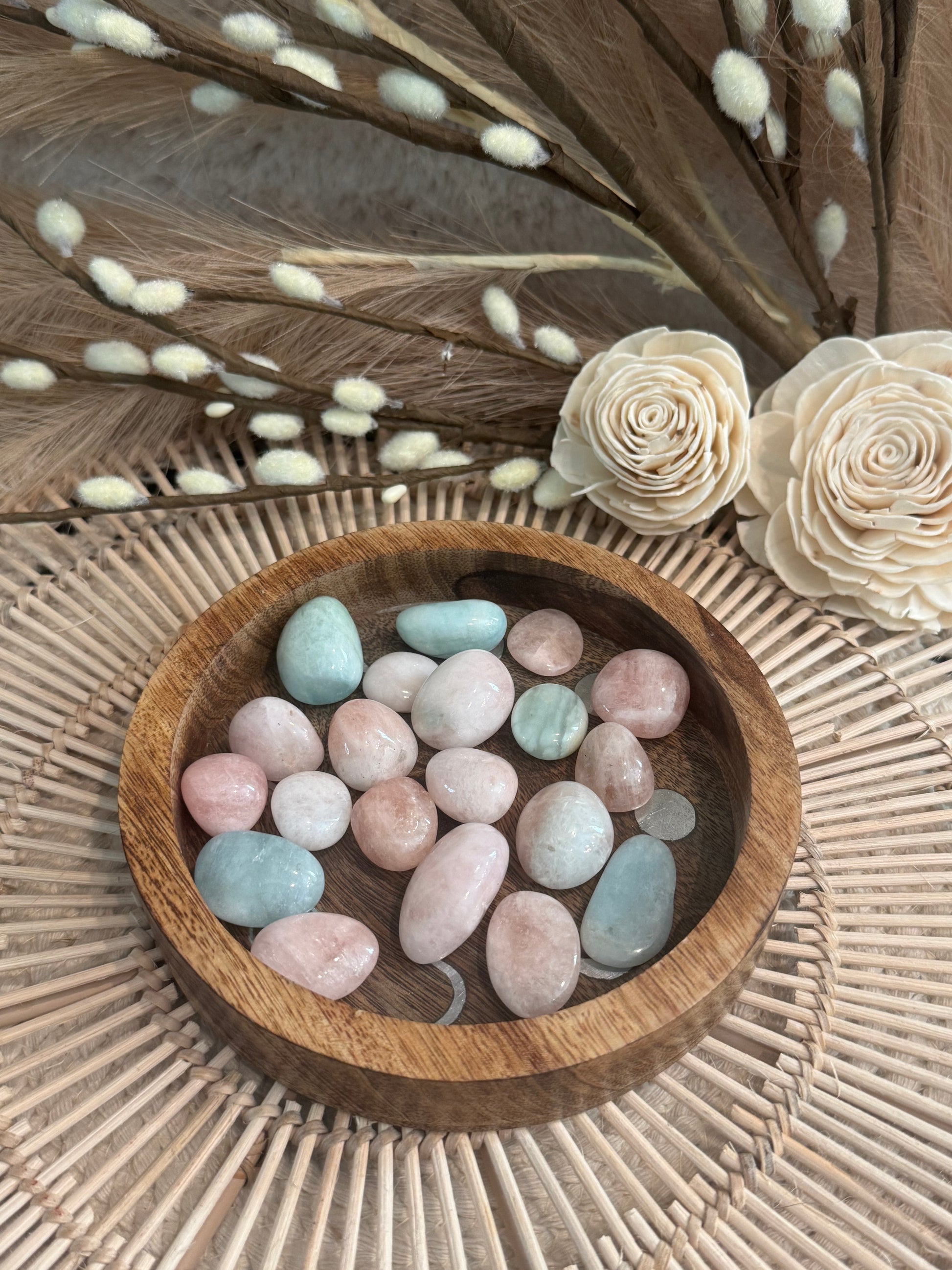 Our Morganite stones are carefully polished into smooth, tumbled shapes to enhance their soothing energy. The polished surface feels comforting to hold, making them perfect for meditation, daily carry, or placing on your heart during healing sessions. Tumbled stones are also ideal for crystal grids, jewelry making, or simply as a tactile reminder of love and peace.