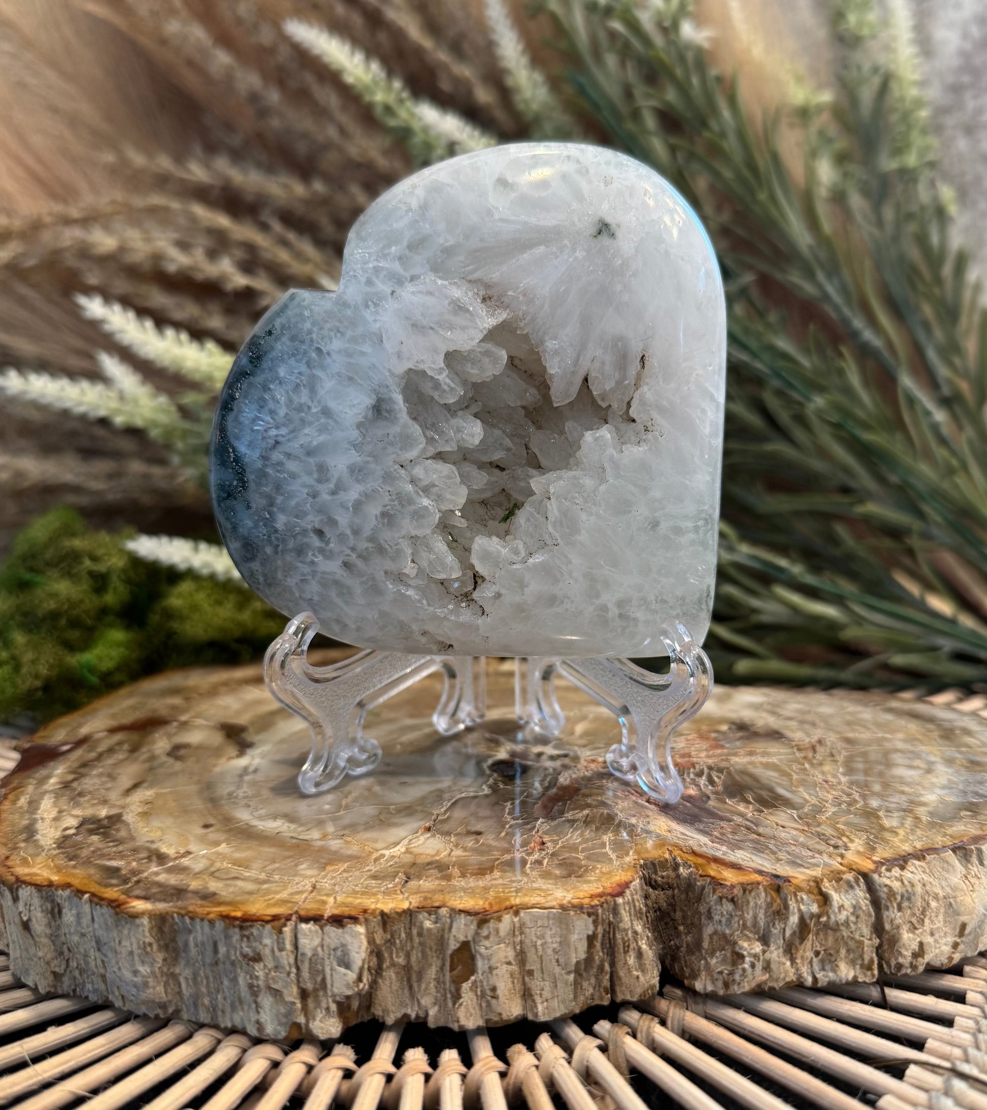 - Place your Moss Agate Druzy Heart in your space to attract abundance and harmony.