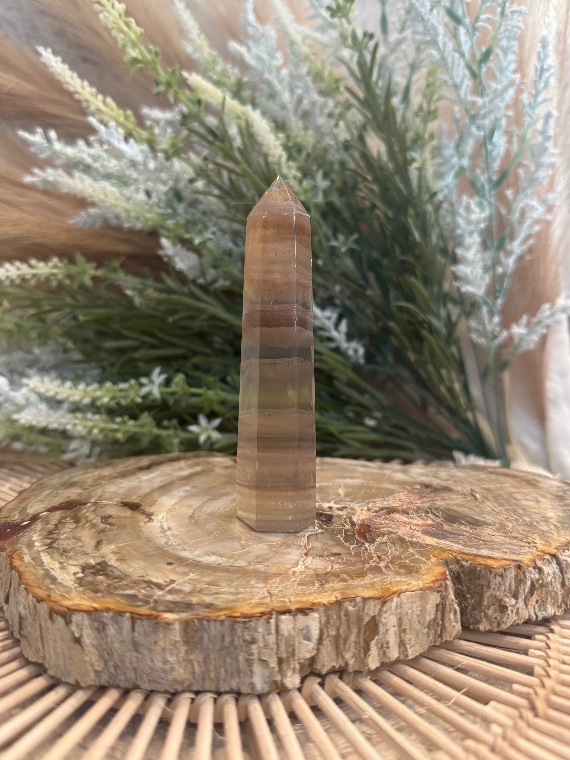 Crystal towers are designed to amplify and direct energy through their pointed tip. A Rainbow Fluorite tower focuses the stone's cleansing and stabilizing properties, making it ideal for meditation, energetic grids, or as a centerpiece in your sacred space. It helps channel clarity, calm, and intention into your surroundings.