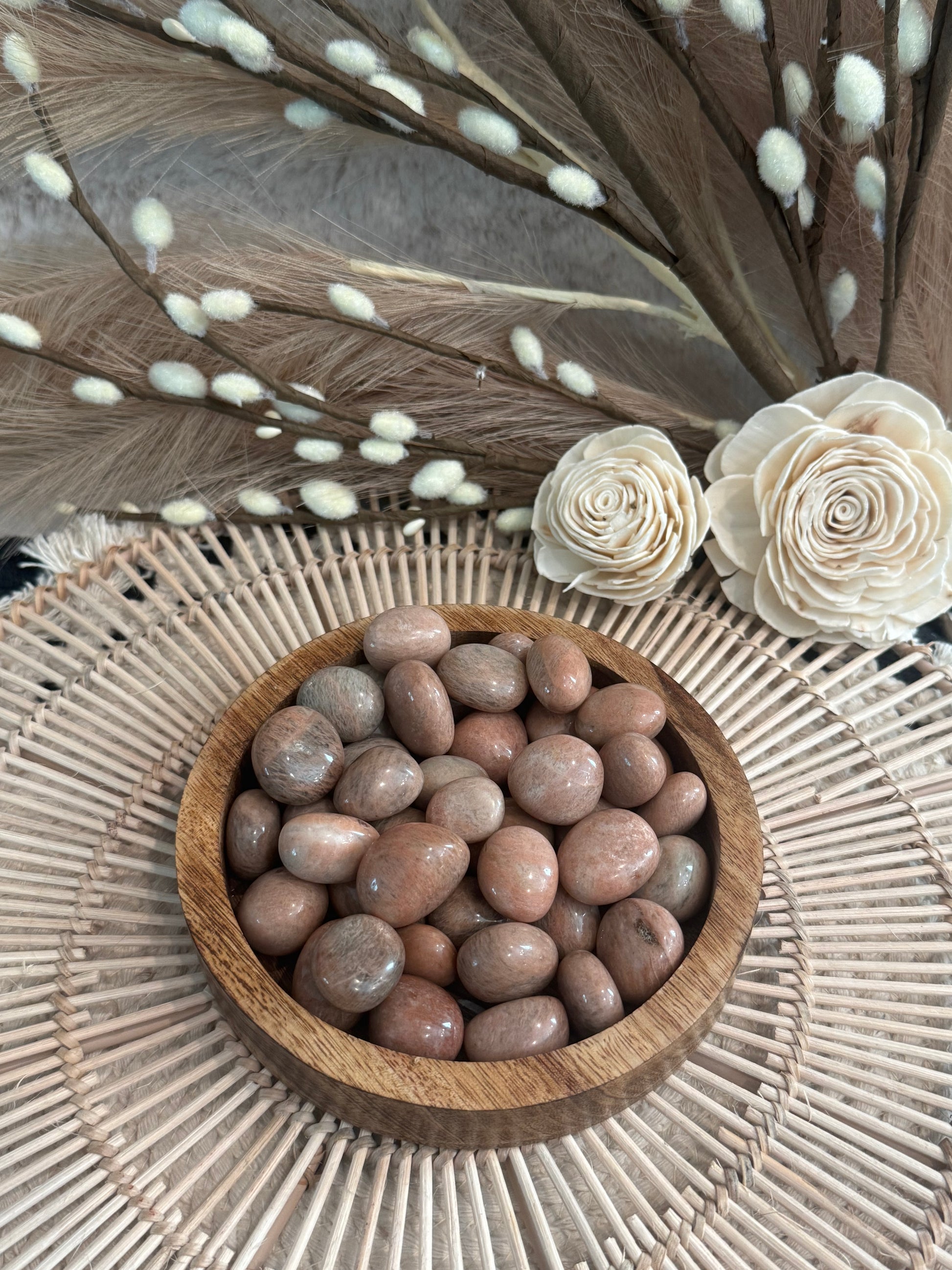 Tumbled Peach Moonstone is smooth to the touch and ideal for carrying with you, using in meditation, or placing on the body during healing practices. The tumbled form enhances its calming, fluid energy, making it easy to incorporate into your daily rituals or self-care routines.