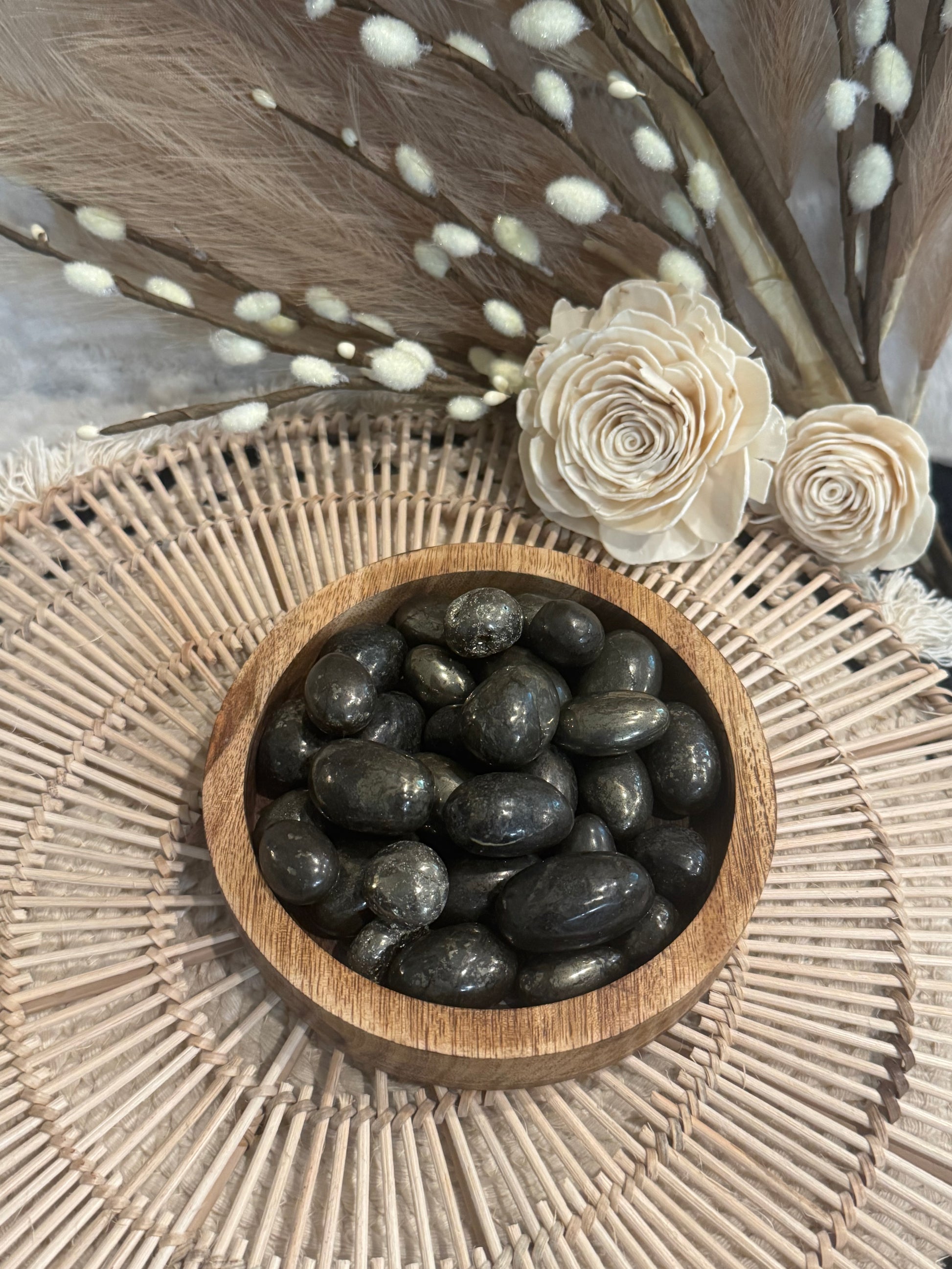 Pyrite is a bold, energizing stone known for attracting good fortune, abundance, and prosperity.