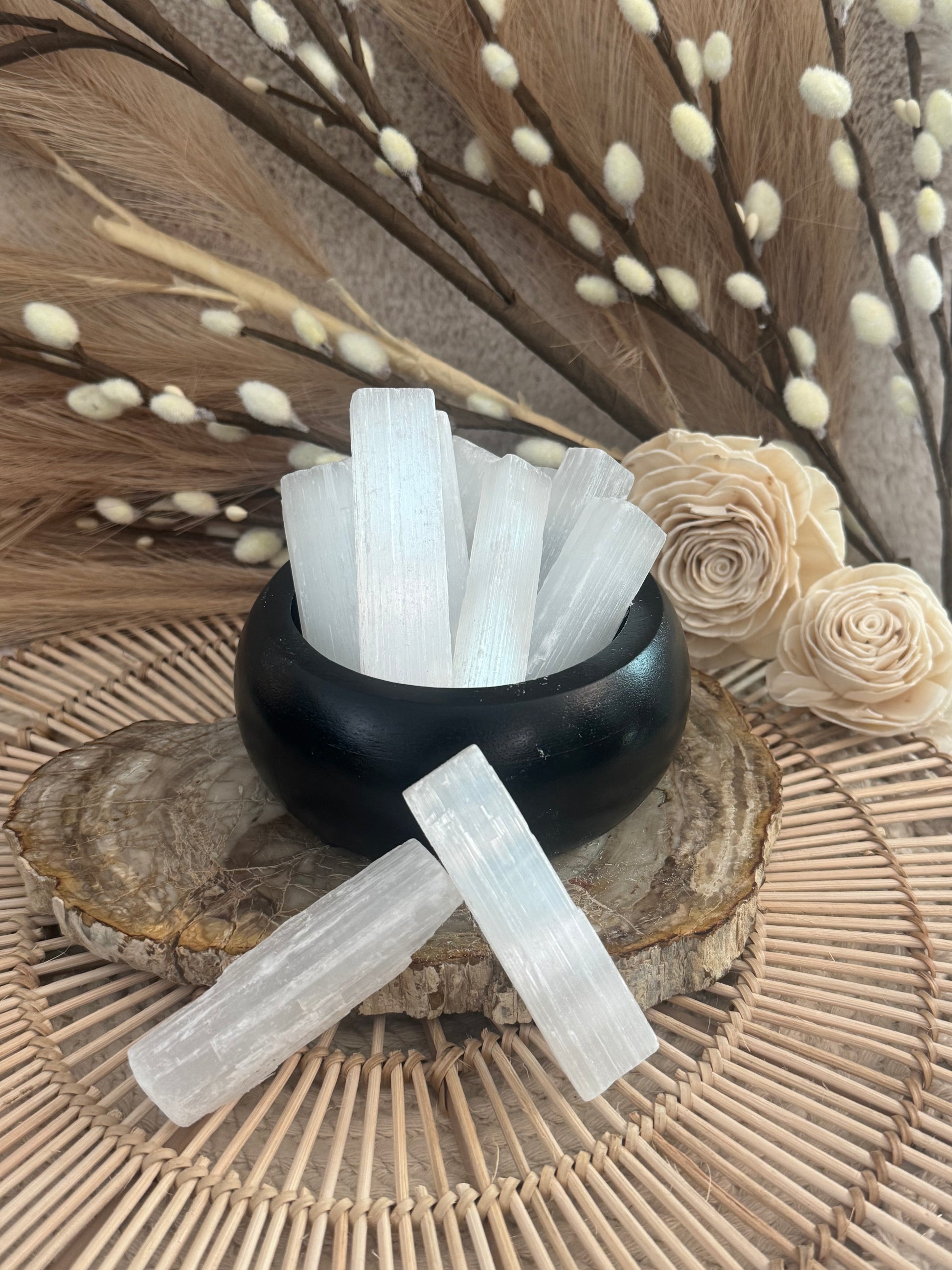 Selenite sticks are ideal for energy sweeping, chakra balancing, and crystal cleansing. Their wand-like shape makes them perfect for moving stagnant energy off the body, scanning the aura, or creating energetic boundaries in your space. Lightweight and easy to use, they are a staple in any healer’s or lightworker’s toolkit.