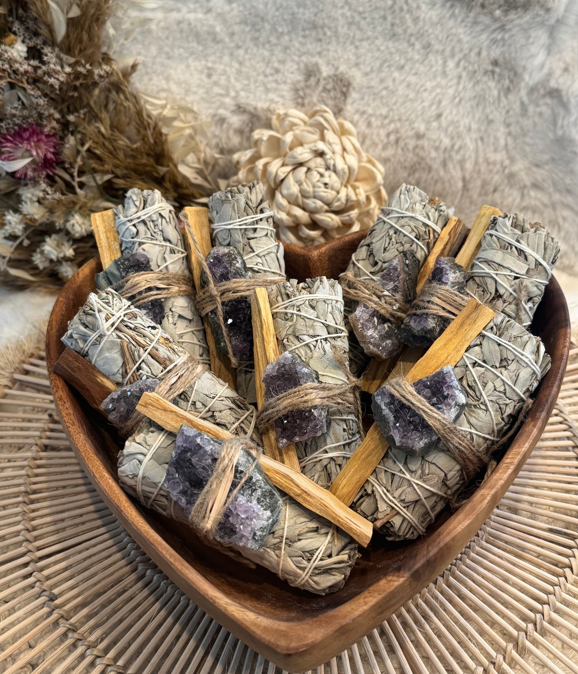 Discover the powerful combination of White Sage, Palo Santo, and Amethyst—three sacred tools used for centuries to cleanse energy, enhance focus, and promote spiritual balance.